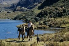 The starting point of the trip is Ushuaia, the southernmost city in the world, near the storm-lashed Cape Horn. I bought two Criollo horses from the manager of the Estancia “Maria Behety”, but I had to tame them myself . After five weeks of training we started, with a large portion of recklessness and self-confidence in my luggage, I started north, into an unknown country. “We're on our way to Alaska,” I wrote in my diary that evening. The completely flat steppe landscape of southern Argentina, in which the horizon flickers in front of the eye as a vague line in the infinite distance, seemed to want to make it clear how endless this road to Alaska is. Bolivia initially showed its rough side. The dry, monotonous area is characterized by the red, washed-out earth. Even the houses are built from this earth and seem to merge with the ground. Only a few cacti defy the drought and cold of the Altiplano - the plateau of South America. The people here at over 2,000 meters live from the few animals, sheep, goats or donkeys that they own and that are guarded by the children on the wayside. Dressed in a poncho and a woolen hat, but barefoot, they defy the often grim cold. From Ecuador, the trip changes. I was tired of traveling alone for a long time. From Ecuador, Barbara Kohmanns accompanied me. With four horses - in fact there were five, but that was only to be found out later - we now followed the old Inca trail. This old Inca road once led over 5,000 km through the Andes, from today's Santiago de Chile to Quito. Some parts of the path are still paved with the large square stones. Who has already traveled here? With its 5,000 m high volcanic peaks, the Amazon rainforest, the plateau and the coastal landscape, Ecuador is one of the most diverse countries in South America.