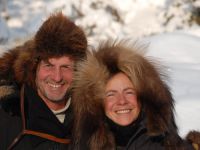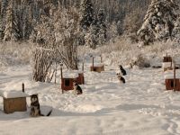 Wir haben einen Platz für den Winter gefunden. Und zwar nicht nur für unsere Pferde, die ja bereits seit Mitte Oktober auf einer schönen, großen Weide nördlich in Dome Creek, B.C., ihre Winterpause genießen, sondern nun auch für uns. Bei Danny und Lorraine, im nördlichen British Columbia haben wir einen idealen Platz gefunden. In einer kleinen, rustikalen Blockhütte kilometerweit von der nächsten Strasse entfernt, verbringen wir unseren ersten kanadischen Winter, in dem wir uns einem ganz neuen Projekt widmen werden: wir wollen erste Erfahrung mit Schlittenhunden sammeln. Einen Eindruck vom kanadischen Winter haben wir bereits bekommen, in den vergangenen Tagen sank die Temperatur auf -34 Grad Celsius. Lautlos, friedlich und eiskalt erscheint da die Winterlandschaft im Licht des Vollmonds. Bei dieser Kälte verkriechen sich sogar die 30 Alaskan Huskys und Malamuts in ihre Hundehütten. Sie werden unsere Gefährten in diesem Winter sein, während Dino, Rusty, Lightfoot und Azabache einige Monate Pause haben.