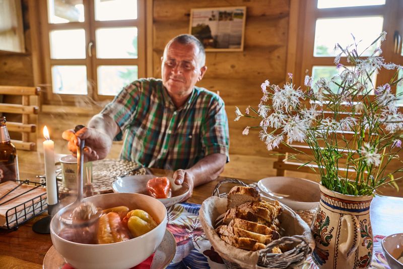 Die Karpaten sind geprägt von Ursprünglichkeit: klare Bäche, weite Täler und alte Schäferpfade. Bei der Wahl der Übernachtungsmöglichkeiten verzichten wir bewusst auf Luxus und Komfort, und entscheiden uns für einfache Unterkünfte bei gastfreundlichen Menschen, die noch im Einklang mit der Natur leben. Die Familien leben hier zum Großteil noch als Selbstversorger. Vieles wird von Hand gemacht; das Bestellen der Felder sowie auch die jährliche Heuernte. Auch die Kühe werden noch mit der Hand gemolken. Wer Lust hat, darf es gerne mal versuchen. Das Pferd ist aus dem Arbeitsleben der Bevölkerung nicht wegzudenken.