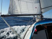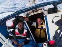 Bei starkem Rückenwind waren Günter und Dani durch die Straße von Gibraltar hinaus in den Atlantik gesegelt. Und dort, etwa 10 Meilen südöstlich von Tarifa, entdeckte Günter ein kleines Schlauchboot mit zwei jungen Afrikanern, inmitten der hohen Wellen. Nach einigen Versuchen gelingt es ihnen, die Jungs an Bord zu nehmen. Sie füttern sie mit Steinpilz-Risotto und Tee. Günter funkt mit Tarifa Rescue, die versprechen, sofort loszufahren. Zwei Stunden später wird das kleine Segelboot von starken Scheinwerfern beleuchtet. Das Übergabemanöver ist schwierig und gefährlich: Bei Dunkelheit, 4 Meter hohen Wellen und Windstärke 5 zwei Boote so nahe zusammenzubringen, dass zwei Menschen von einem Schiff auf das andere springen können, ist schwierig und gefährlich. Irgendwann gelingt es aber. Die beiden sind in Sicherheit und Günter und Dani beginnen, ihr Chaos zu ordnen. Dann sitzen sie im Cockpit und trinken Whisky, zu aufgewühlt zum Schlafen. Vielleicht war ja das der Sinn ihrer Segelreise. Unglaublich, das Risiko, das diese Leute eingehen, auf der Suche nach einem neuen Leben! Sie hatten weder Ruder, noch Essen, noch Wasser dabei. Der starke Ostwind hätte sie schnellstens in den Atlantik hinaus geweht.