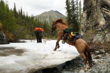 In den nördlichen Rocky Mountains durchquerten wir ein riesiges Wildnisgebiet, die Muskwa-Kechika. Ein Gebiet, so groß wie die Schweiz, doch ohne Straßen und Dörfer. Erstmals waren wir vier Monate am Stück in der Wildnis unterwegs, ohne Kontakt zur Zivilisation. Die größte  Herausforderung in diesem Gebiet waren die zahlreichen Flüsse, die wir durchqueren mussten. Hier wurde uns einmal mehr bewußt, wie wichtig die Pferde für uns sind. Sie sind für uns viel mehr als nur Reittiere und Lastenträger. Sie sind unsere Weggefährten. Ohne sie hätten wir die Reise nicht machen können. Dank der Packpferde können wir Proviant für bis zu vier Wochen transportieren und die Reitpferde haben uns sicher durch Flüsse getragen, die wir aufgrund der eiskalten Wassertemperatur nie hätten durchschwimmen können.