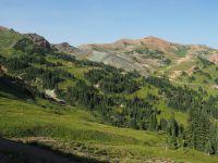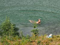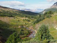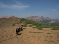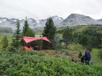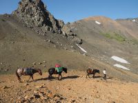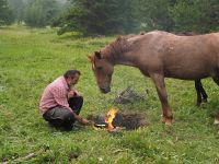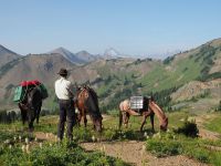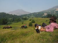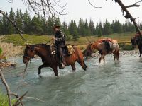 Auch wir hatten den Eindruck, dass das Gefühl von Wildnis für uns durch die Begegnungen mit den Radfahrern verloren geht. Es waren schöne Begegnungen, kurze aber interessante Gespräche, sympathische Menschen. Doch es passt einfach nicht, wenn dir nach sieben Tagen in der Wildnis eine Gruppe Mountainbiker entgegen kommt, frisch geduscht und in so strahlend sauberen Klamotten, dass sich unsere Pferde erschrecken, und dann erzählen sie dir, dass sie sich bereits jetzt auf das Bier am Abend in der Stadt freuen. Doch in unserer modernen Welt gibt es einfach keine Zeit mehr für wochenlange Reisen mit Pferden. Das Naturerlebnis muss daher wohl immer schneller sein. Ist unsere Art des Reisens nicht mehr zeitgemäß? Will überhaupt noch jemand wochenlang draußen sein? Doch dann entdecke ich es immer wieder, das Leuchten in den Augen, in den zunächst erstaunten Gesichtern, wenn ich auf die Frage, wie lange wir denn hier draußen unterwegs sind, mit „20 Tage“ antworte. Dabei wissen sie nicht einmal, dass dies nur ein Kurztrip ist. Die Sehnsucht ist da, nur die Zeit nicht. “Now I’m only doing fraight, I’m too old for anything else - Heute führe ich nur noch diese Packpferde, für alles andere bin ich zu alt.“ Mit breitem Grinsen reitet Jamie davon, auf kleinen, schmalen Pfaden durch die Berge. 2 Wochen wird er diesmal unterwegs sein. Staunend blicke ich ihm nach. Zu was dieser Mann wohl früher im Stande war, wenn er mit Mitte 70 „nur noch“ seine Packpferde beladen und wochenlang durch die Berge führen kann?