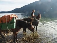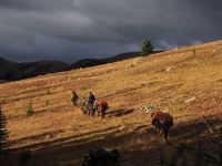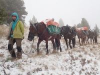 Ende September fällt der erste Schnee. Dicke, schwere Flocken, die Hufe pflügen durch Tiefschnee über den Frosty Pass, der seinem Namen alle Ehre macht. Am diesem Abend erreichen wir hier mitten in den Bergen unser Ziel für diesen Sommer. Im Morgengrauen kommt ein Wanderer vorbei. Der erste seit acht Wochen. Der Schnee knirscht unter seinen Füßen. Wir laden ihn ein an unser warmes Feuer und er erzählt von seiner Wanderung, von den letzten 6 Monaten, den 2.650 Meilen, die hinter ihm liegen. Nur noch 3 Meilen sind es für ihn bis zur kanadischen Grenze, dann hat er sein Ziel erreicht. Seine Euphorie ist ansteckend. Gut gelaunt ziehen wir an diesem Tag weiter. Denn für uns liegen sie noch vor uns, die 4.270 km des PCT. Aber das kommt nächsten Sommer. Jetzt ist es an der Zeit, unsere Pferde in ihr gemütliches Winterquartier zu bringen, zurück zu der traumhaft schönen Ranch, an der wir vor zwei Wochen vorbeigeritten sind. Denn die Gastfreundschaft geht weiter.